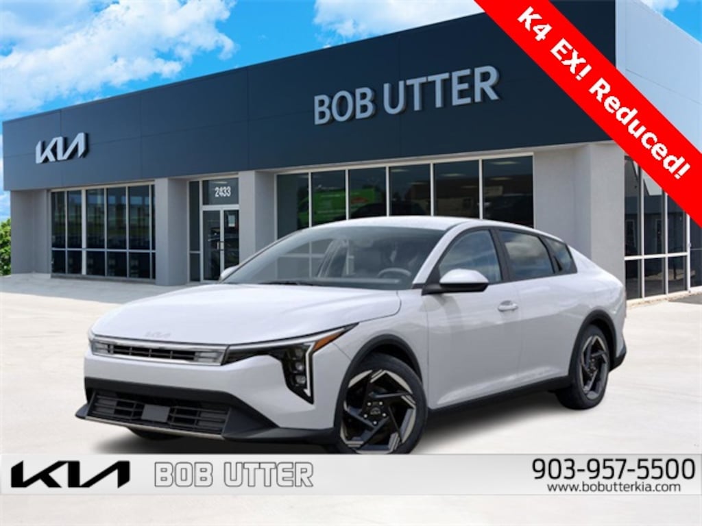 'Here at Bob Utter Kia, we want you to feel like you are a part of our family. Our Internet Sales Team makes purchasing a vehicle quick and easy! Let us help you with your new Kia TODAY! You can view all of our inventory at www.bobutterkia.com. Contact the Internet Sales Dept. at 903-957-5500 or sales@bobutterford.com. All vehicles may be equipped with dealer added accessories. Price of accessories may not be displayed. Please verify added accessories and price with dealer. Disclaimer: This vehicle may have sustained a minor hail event, which may have been repaired. All damage is cosmetic only and does not affect the mechanical condition or performance of the vehicle. Photos are available upon request. Pricing has been adjusted accordingly to reflect this damage. 2025 Kia K4 EX 2.0L I4 MPI FWD Snow White Pearl 29/39 City/Highway MPG Price includes: $1000 - KFA Dealer Choice Program: $1000 discount and 5.50% APR for 36 months. $30.20 per $1000 financed. Available to well qualified buyers who finance through Kia Finance America. 506. Exp. 11/03/2025