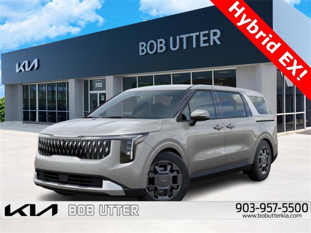 'Here at Bob Utter Kia, we want you to feel like you are a part of our family. Our Internet Sales Team makes purchasing a vehicle quick and easy! Let us help you with your new Kia TODAY! You can view all of our inventory at www.bobutterkia.com. Contact the Internet Sales Dept. at 903-957-5500 or sales@bobutterford.com. All vehicles may be equipped with dealer added accessories. Price of accessories may not be displayed. Please verify added accessories and price with dealer. Disclaimer: This vehicle may have sustained a minor hail event, which may have been repaired. All damage is cosmetic only and does not affect the mechanical condition or performance of the vehicle. Photos are available upon request. Pricing has been adjusted accordingly to reflect this damage. 2026 Kia Carnival Hybrid EX 1.6L I4 DGI Hybrid Turbocharged DOHC 16V LEV3-SULEV30 FWD Ivory Silver 34/31 City/Highway MPG Price includes: $1000 - KFA Dealer Choice Program: $1000 discount and 5.25% APR for 36 months. $30.08 per $1000 financed. Available to well qualified buyers who finance through Kia Finance America. 506. Exp. 01/02/2026