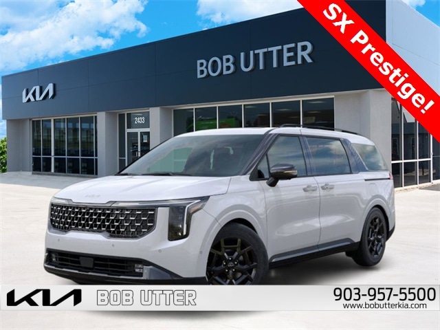 'Here at Bob Utter Kia, we want you to feel like you are a part of our family. Our Internet Sales Team makes purchasing a vehicle quick and easy! Let us help you with your new Kia TODAY! You can view all of our inventory at www.bobutterkia.com. Contact the Internet Sales Dept. at 903-957-5500 or sales@bobutterford.com. All vehicles may be equipped with dealer added accessories. Price of accessories may not be displayed. Please verify added accessories and price with dealer. Disclaimer: This vehicle may have sustained a minor hail event, which may have been repaired. All damage is cosmetic only and does not affect the mechanical condition or performance of the vehicle. Photos are available upon request. Pricing has been adjusted accordingly to reflect this damage. 2026 Kia Carnival SX Prestige V6 FWD Snow White Pearl 18/26 City/Highway MPG