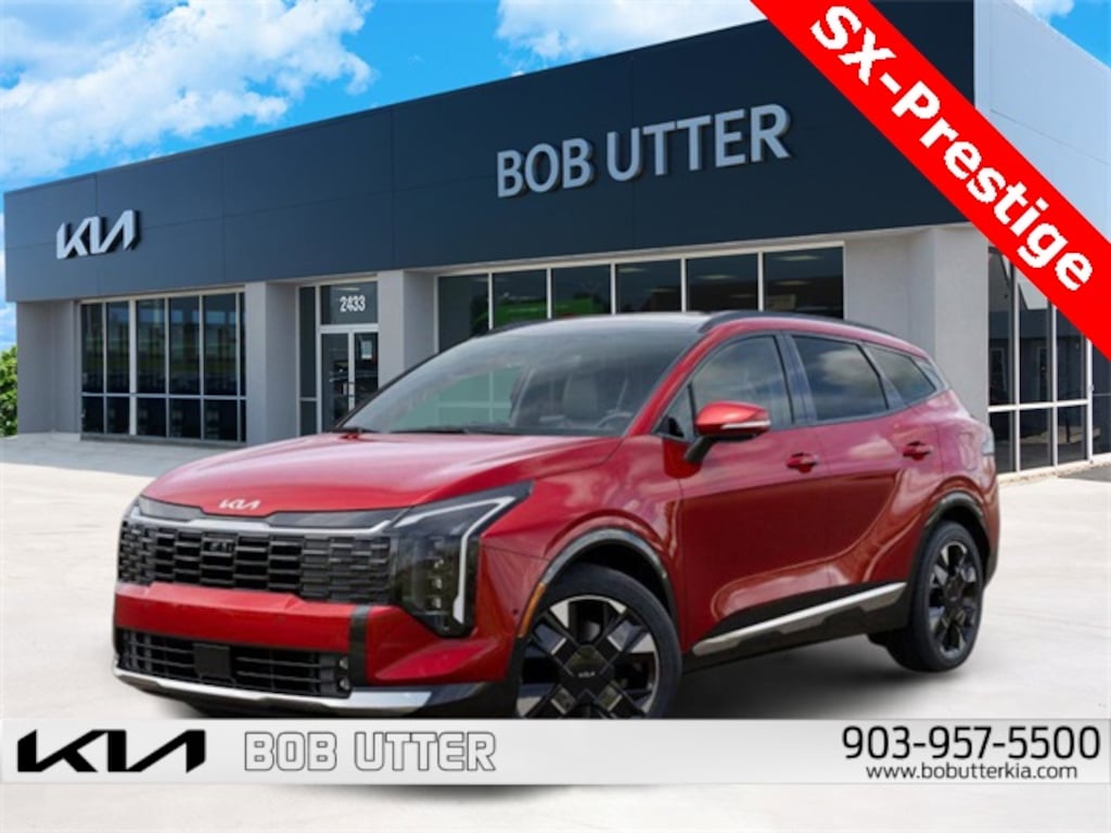 'Here at Bob Utter Kia, we want you to feel like you are a part of our family. Our Internet Sales Team makes purchasing a vehicle quick and easy! Let us help you with your new Kia TODAY! You can view all of our inventory at www.bobutterkia.com. Contact the Internet Sales Dept. at 903-957-5500 or sales@bobutterford.com. All vehicles may be equipped with dealer added accessories. Price of accessories may not be displayed. Please verify added accessories and price with dealer. Disclaimer: This vehicle may have sustained a minor hail event, which may have been repaired. All damage is cosmetic only and does not affect the mechanical condition or performance of the vehicle. Photos are available upon request. Pricing has been adjusted accordingly to reflect this damage. 2026 Kia Sportage SX-Prestige I4 FWD Runway Red 25/33 City/Highway MPG Price includes: $1500 - KFA Dealer Choice Program: $1500 discount and 5.25% APR for 36 months. $30.08 per $1000 financed. Available to well qualified buyers who finance through Kia Finance America. 506. Exp. 12/01/2025